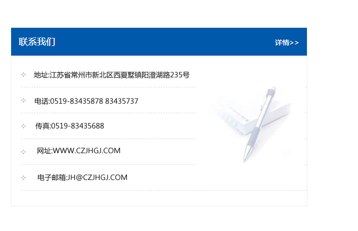 傳真:0519-83435688    郵編:213135    網址:WWW.czjhgj_com.nbdaxili.com    電子郵箱:JH@czjhgj_com.nbdaxili.com